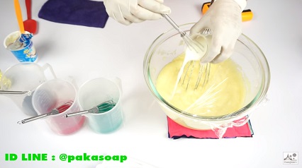 - ขั้นตอนการเตรียมสบู่น้ำมัน CP ก่อนการเล่นลวดลายต่างๆ