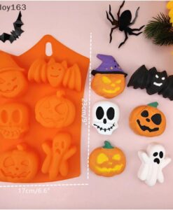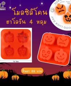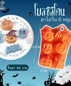 แม่พิมพ์ซิลิโคนโมลซิลิโคน ฮาโลวีน ฟักทอง 6 หลุม ลายกุ๊กกู๋ ทำสบู อบ นึ่ง