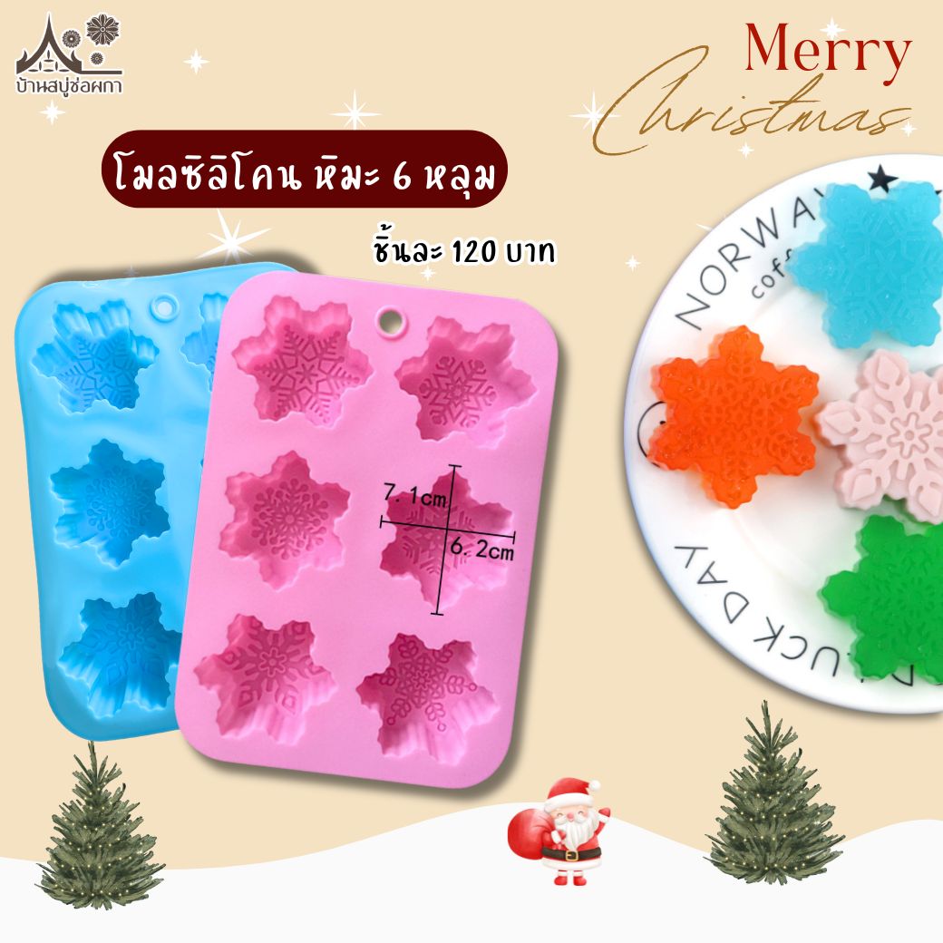 แม่พิมพ์ซิลิโคน แม่พิมพ์อบขนม สบู่ โมลซิลิโคน หิมะ 6 หลุม