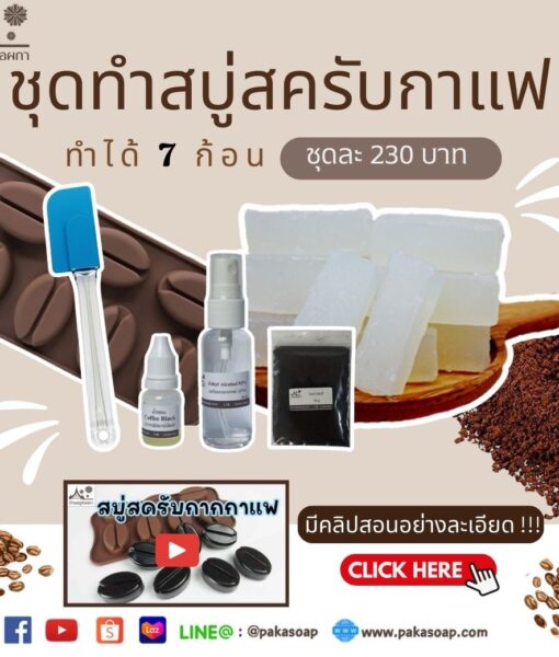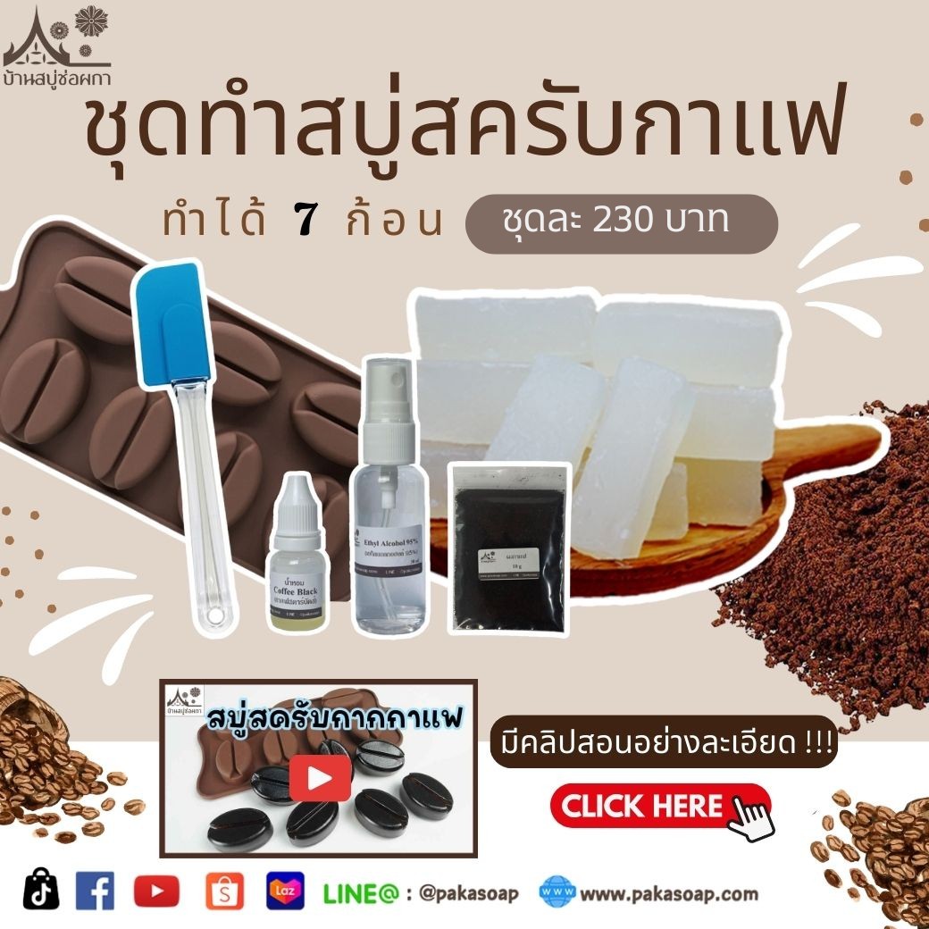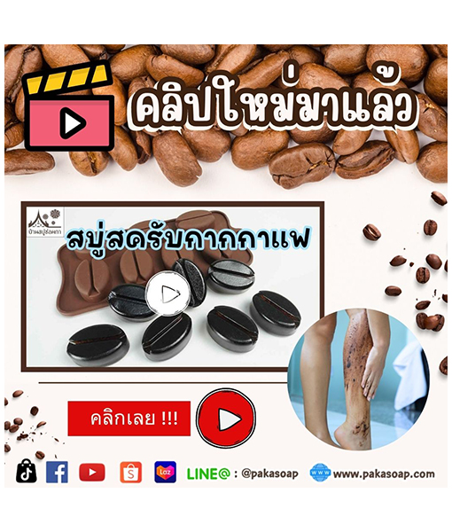☕ชุดทำสบู่กลีเซอรีน สูตรสครับกากกาแฟ ทำได้ 7 ก้อน (ก้อนละ 27 กรัม) รูปเมล็ดกาแฟน่าร๊ากก?☕